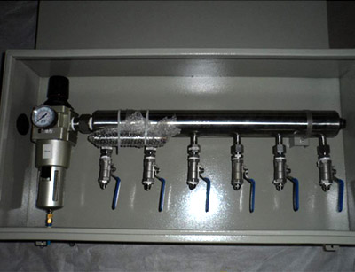 将總氣(qì)源引入,經(jīng)多級緩沖(chong)處理使氣(qi)源變成很(hěn)平穩,經多(duō)個出口供(gong)需要氣源(yuán)的設備使(shǐ)用。